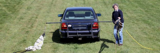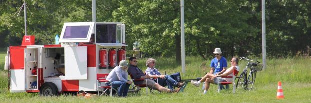 Der Lepo ist unser Fahrzeug um die eingezogenen Seile von der Motorwinde wieder zum Startplatz zu ziehen. Da wir immer zwei Seile gleichzeitig ausziehen (Doppeltrommel Winde), müssen diese mit einem Mindestabstand von 3 m ausgezogen werden, damit sich die Seile nicht auf der 1000 m langen Startbahn übereinaner legen und ggf. verknoten können (wäre unschön beim Start). Um den Abstand von 3 Meter sicherzustellen, haben wir am Heck einziehbare Ausleger montiert.