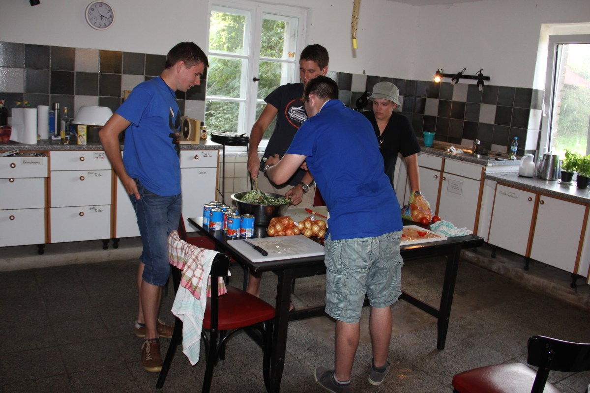 - Für gutes Essen war täglich gesorgt (alles selbst gemacht) ... und auch für die weniger beliebten Tätigkeiten - Reinigung der Sanitären Anlagen - fanden sich jeden Tag andere Personen, so dass die notwendigen Arbeiten gleich verteilt wurden.